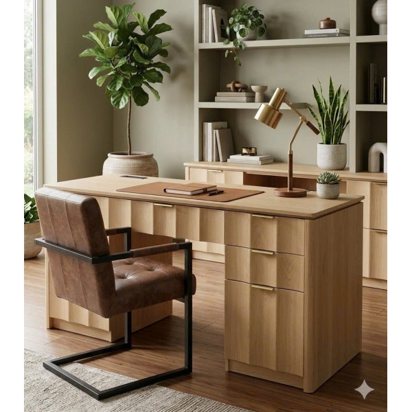 • Với lớp hoàn thiện bằng gỗ sồi tự nhiên và phần cứng kim loại màu xám mộc mạc, chiếc bàn này sẽ phù hợp với nhiều phong cách trang trí nhà cửa và bảng màu khác nhau.
