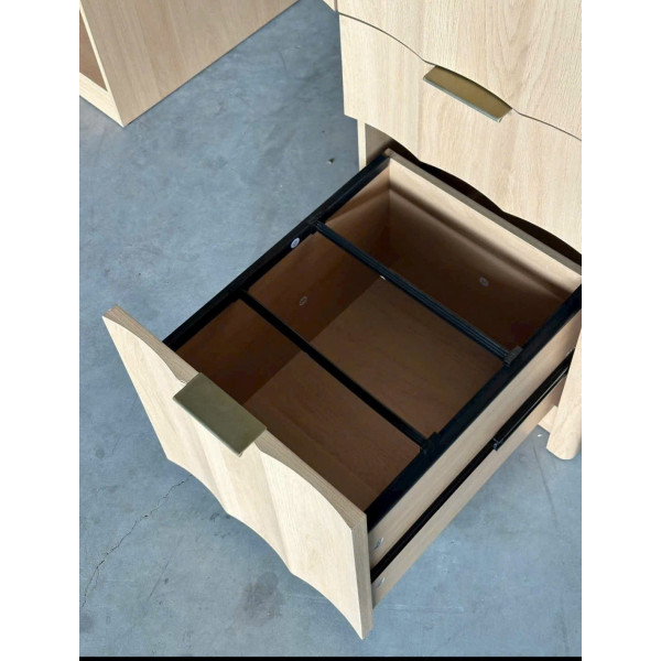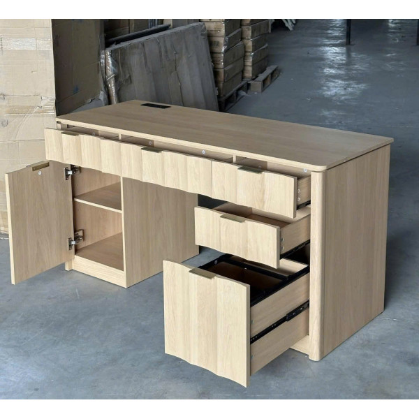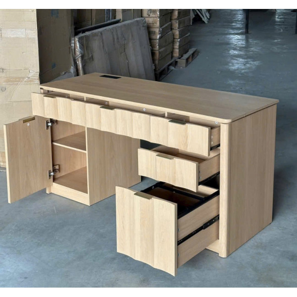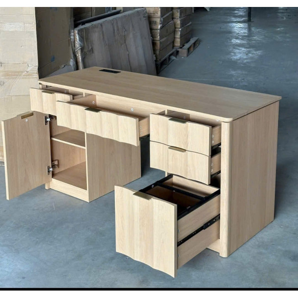 • Tay nắm kim - Bản lề đóng êm - Bàn có các ngăn kéo rộng rãi để đựng giấy tờ và các phụ kiện nhỏ.