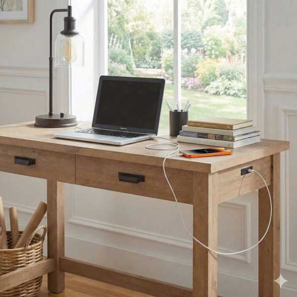 Bàn làm việc tích hợp ổ cắm điện sẽ là lựa chọn hoàn hảo cho việc làm việc tại nhà.