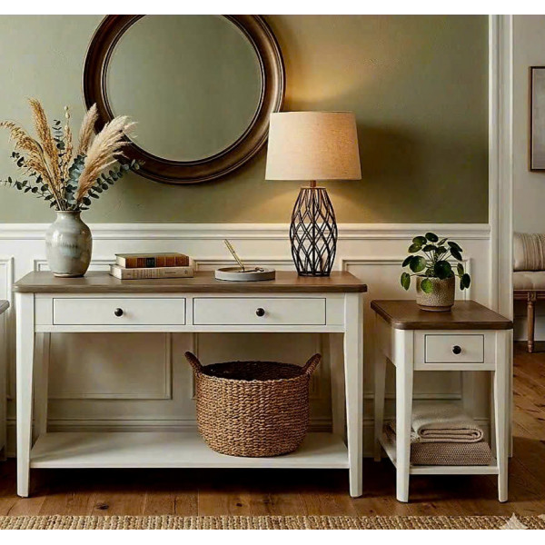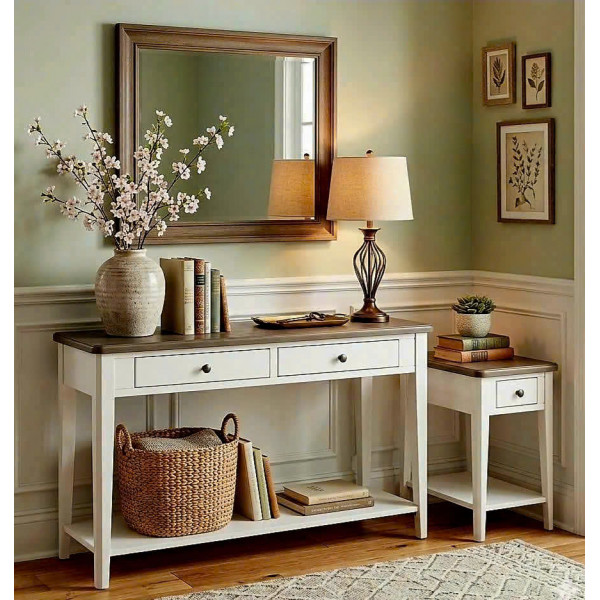 P2728 Collection 03 : Bộ 2 Bàn Trang Trí - Màu Trắng + Nâu