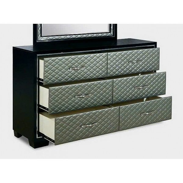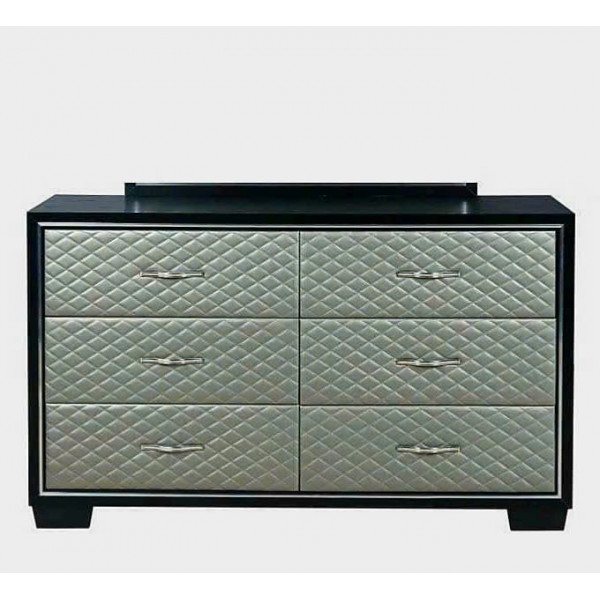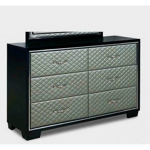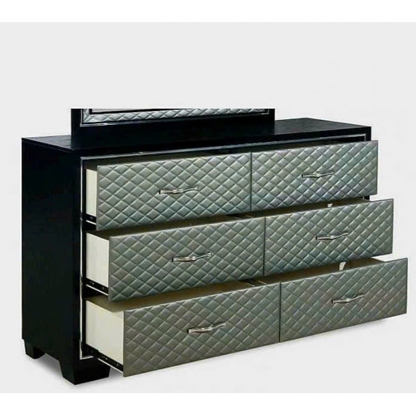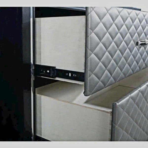 • Khung Tủ Đen + mặt trước ngăn kéo bọc nệm màu Xám trắng + tay nắm Đính hạt ....