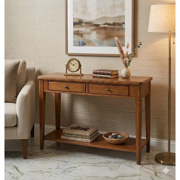 - Khung gỗ Sồi nguyên khối, Mặt bàn bằng gỗ XVernerr : Ngăn kéo đôi, Ray trượt bi, Tay nắm ngăn kéo bằng kim loại