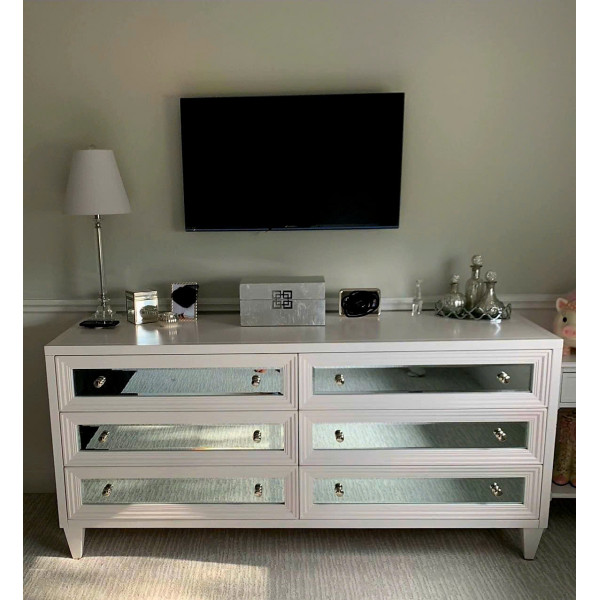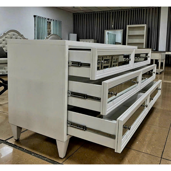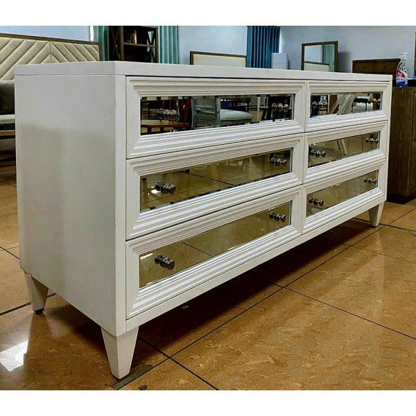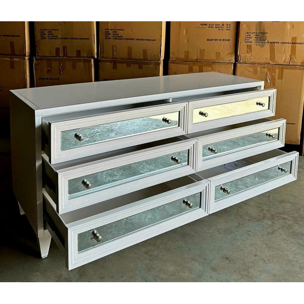 • Tủ có 6 ngăn kéo trượt kéo ra với lớp hoàn thiện bằng gương và núm kéo. Được thiết kế dành riêng cho Z Gallerie và được dán nhãn trong ngăn kéo bên trong.