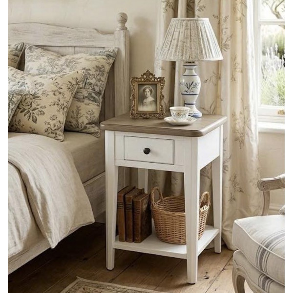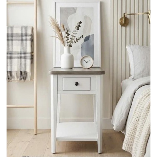 New P2728-23 : Bàn Góc , Bàn Trang Trí - Màu Trắng + Nâu