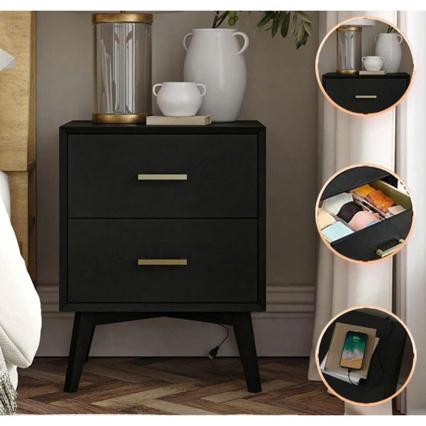 New George Oliver : Tủ 02 Ngăn Kéo + Tích Hợp Ổ Cắm Điện Và Cổng USB