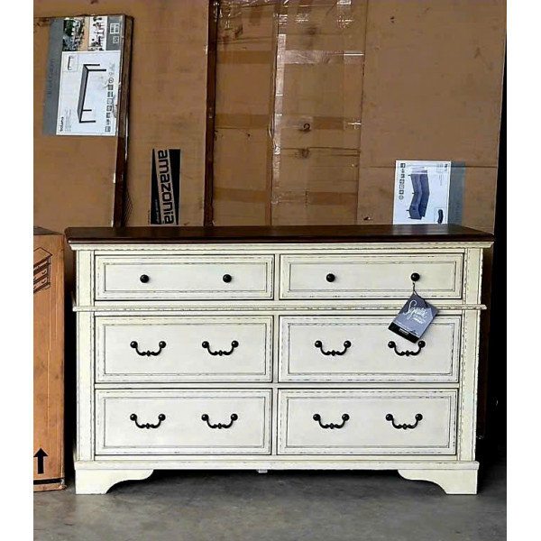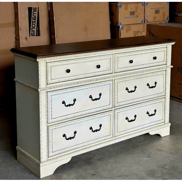 New B747 - 31 : Tủ 6 Ngăn Kéo Giả Cổ - Màu Trắng Sương Mù