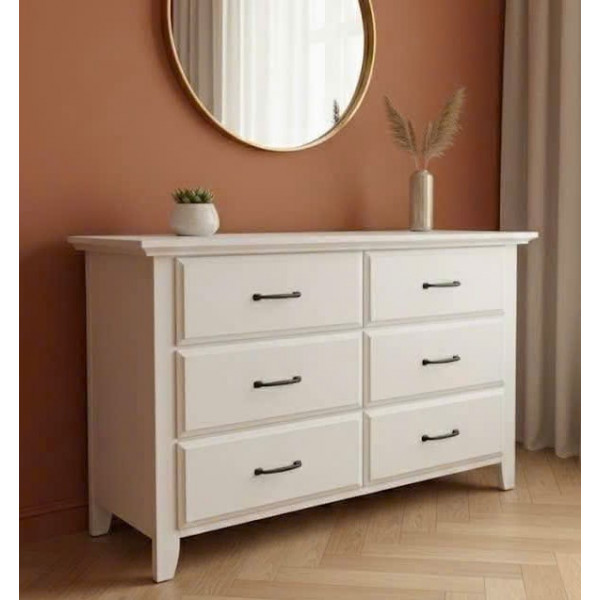Soho White : Tủ Ngang 6 Ngăn Kéo - Màu Trắng Weathered